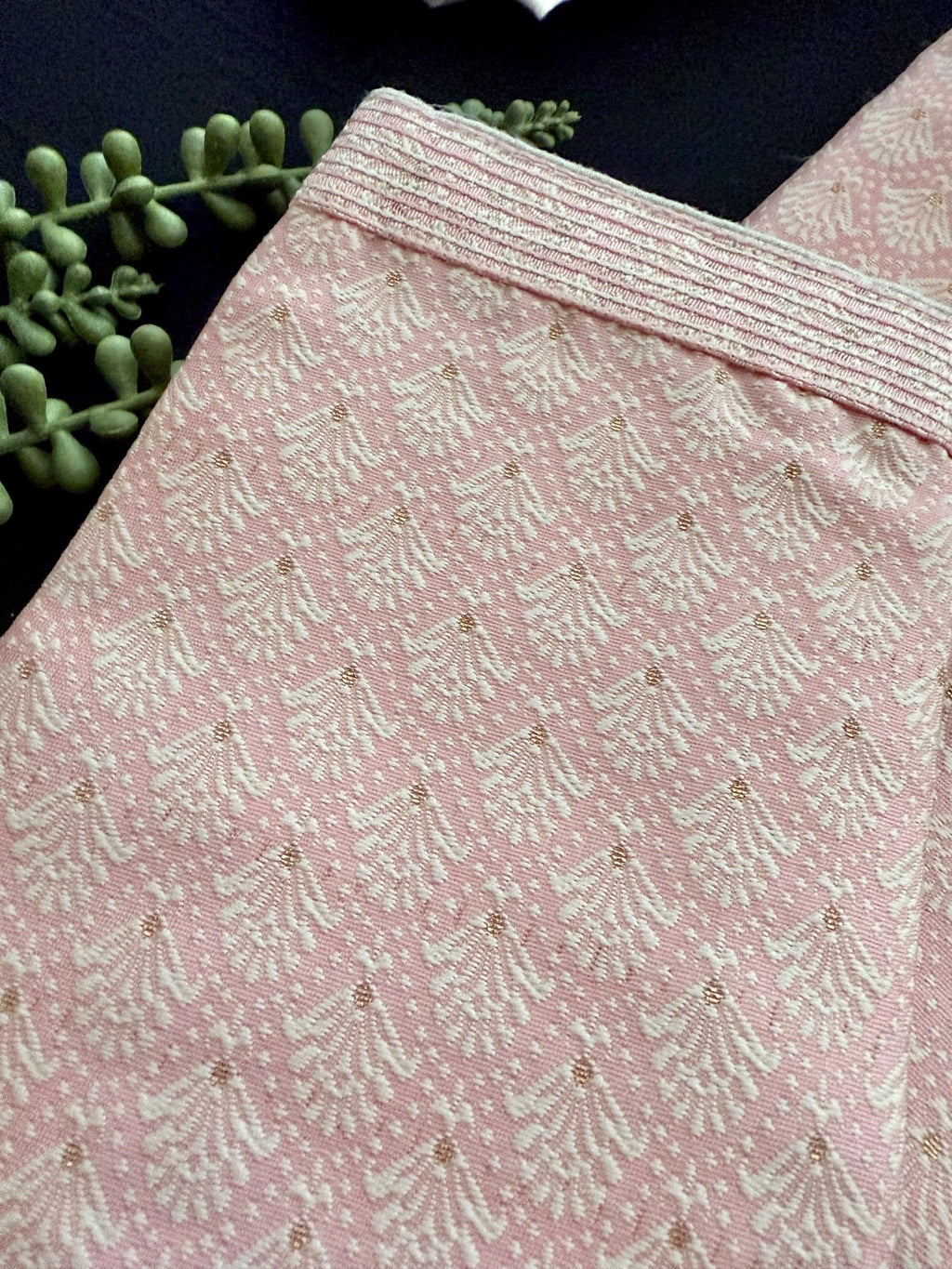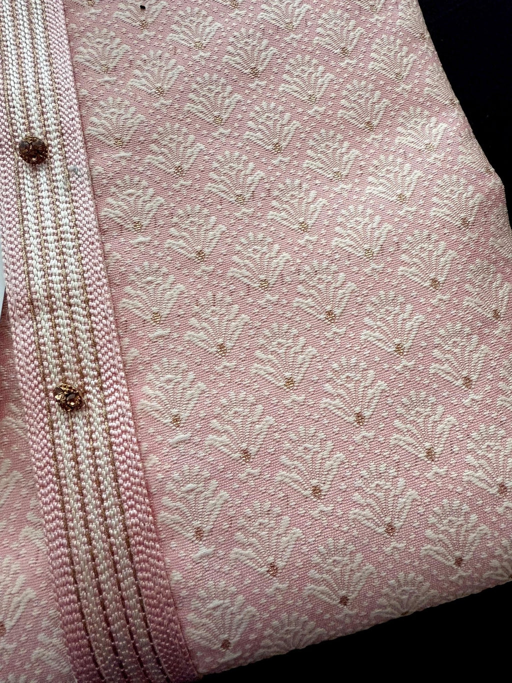 Baby Pink Men Kurta Pajama with Zari Weave work and Self Embroidery