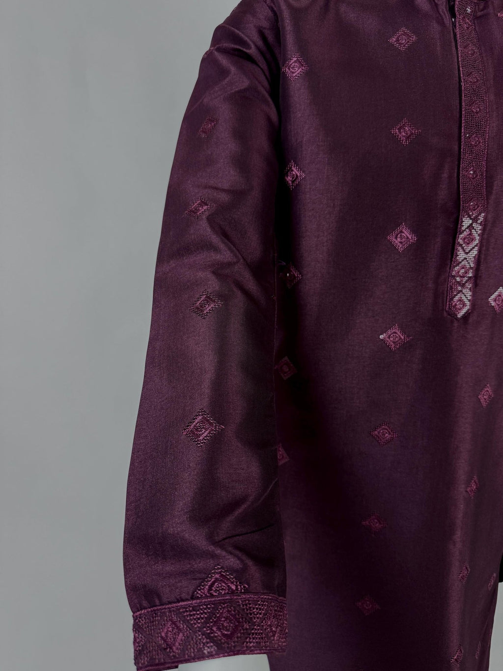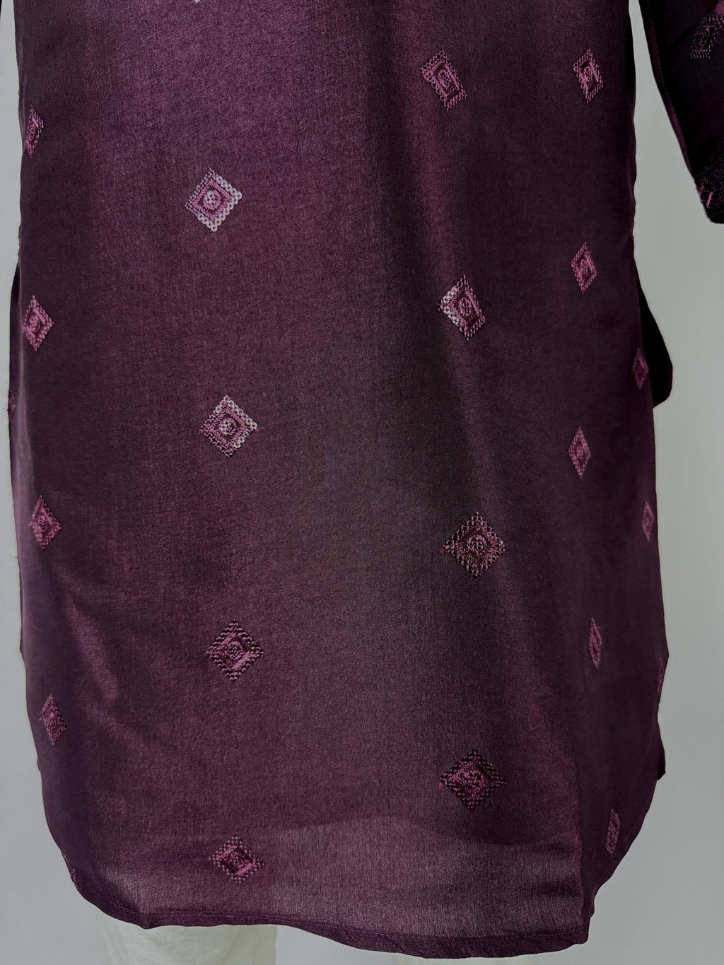 Luxurious Burgundy Soft Silk Embroidered Kurta with Sequin Work
