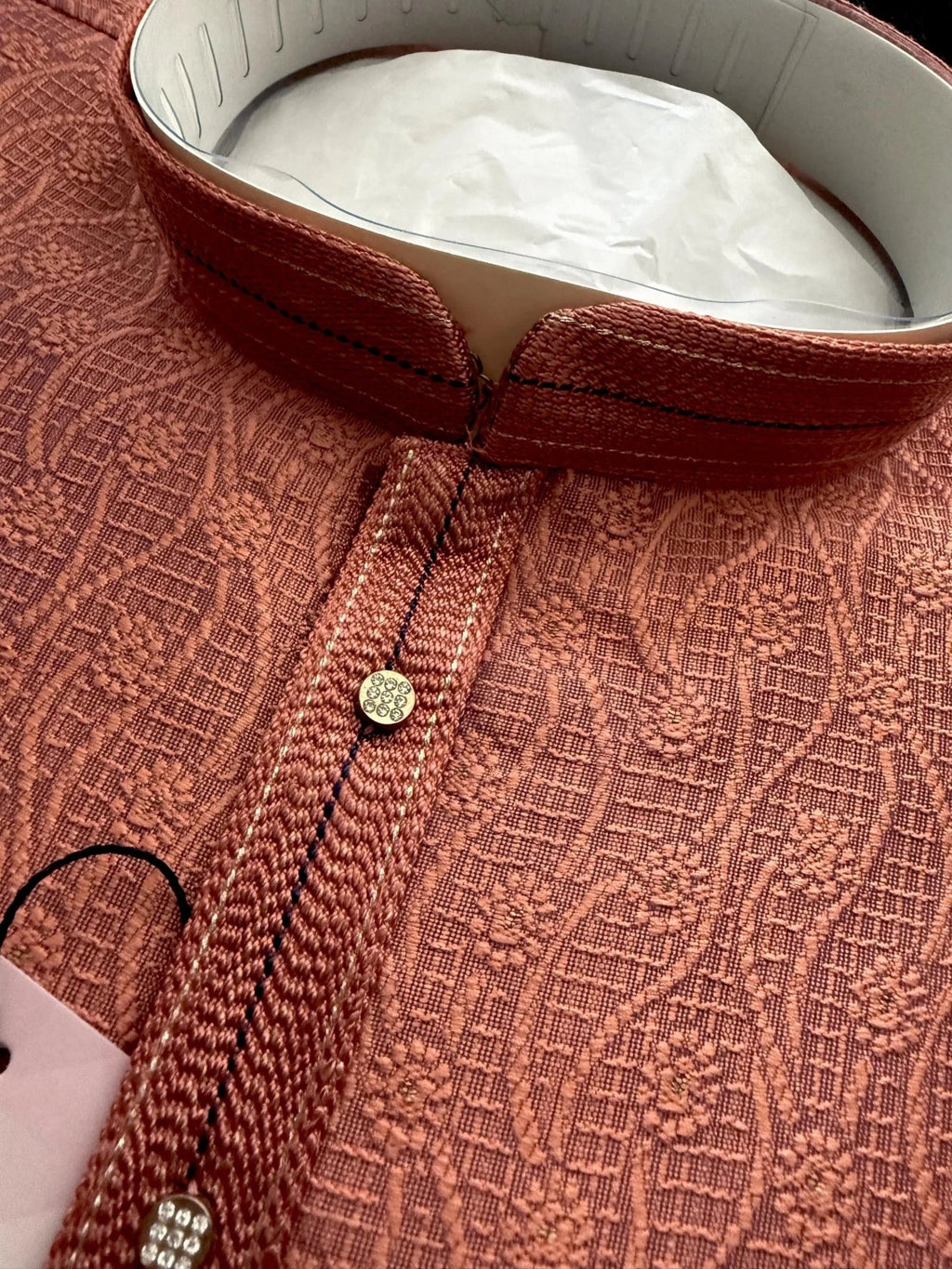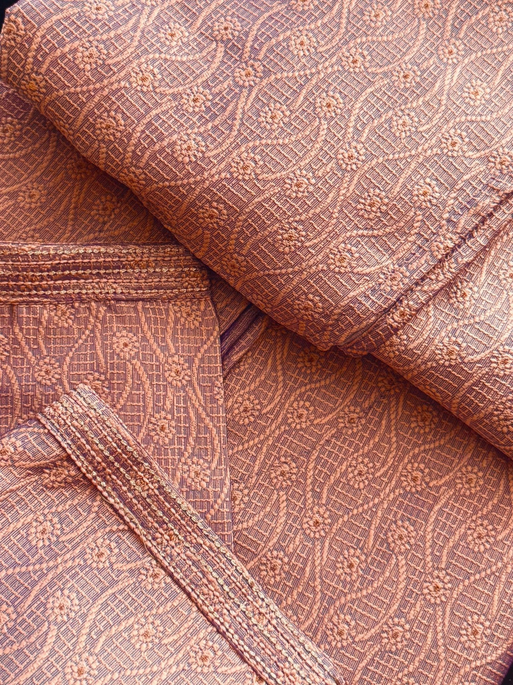 Discover timeless elegance with our Designer Peach Color Men’s Kurta with bottom, beautifully crafted with embossed embroidery work. Perfect for weddings, parties, and festive occasions, this men’s kurta set blends tradition with modern style.