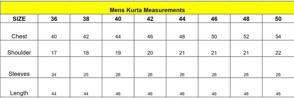 - Size mentioned in the Size chart is the "Kurta measurement"