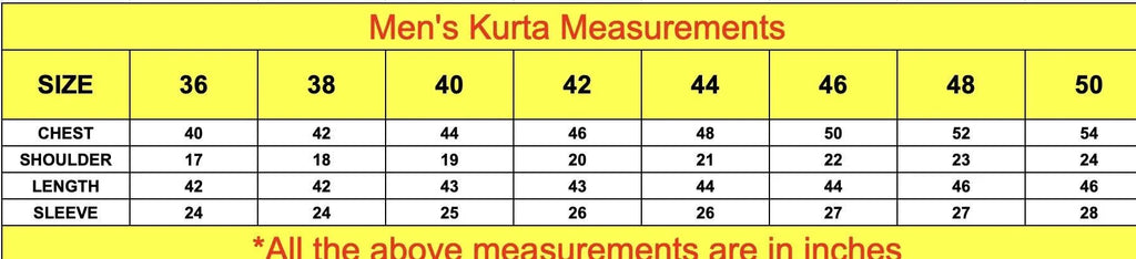 - Size mentioned in the Size chart is the "Kurta measurement"