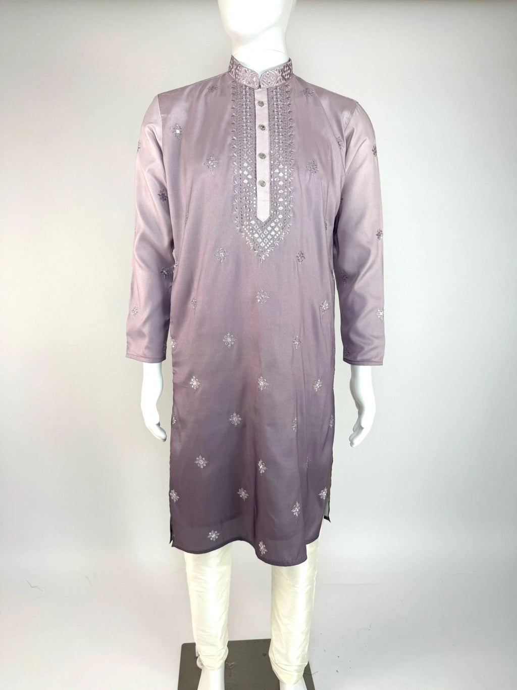 Featured here is our Ombre Lavender Color Kurta with embroidery and sequin work, crafted in soft silk with lining for ultimate comfort and style. Perfect as a Haldi kurta or wedding and party wear kurta for men, this piece reflects traditional artistry with a modern touch.