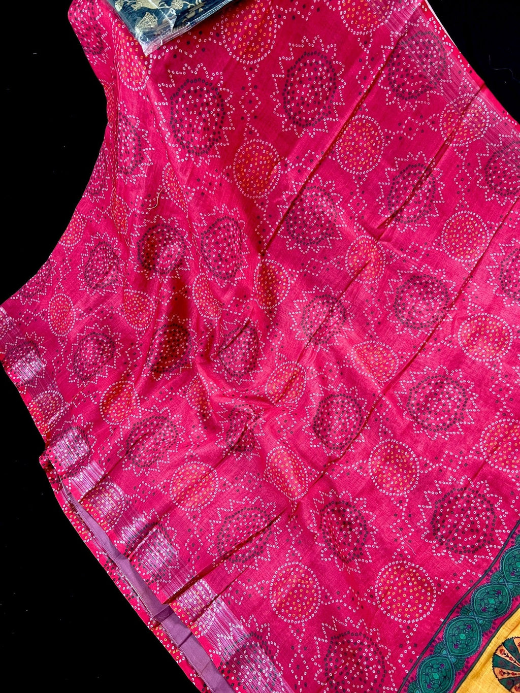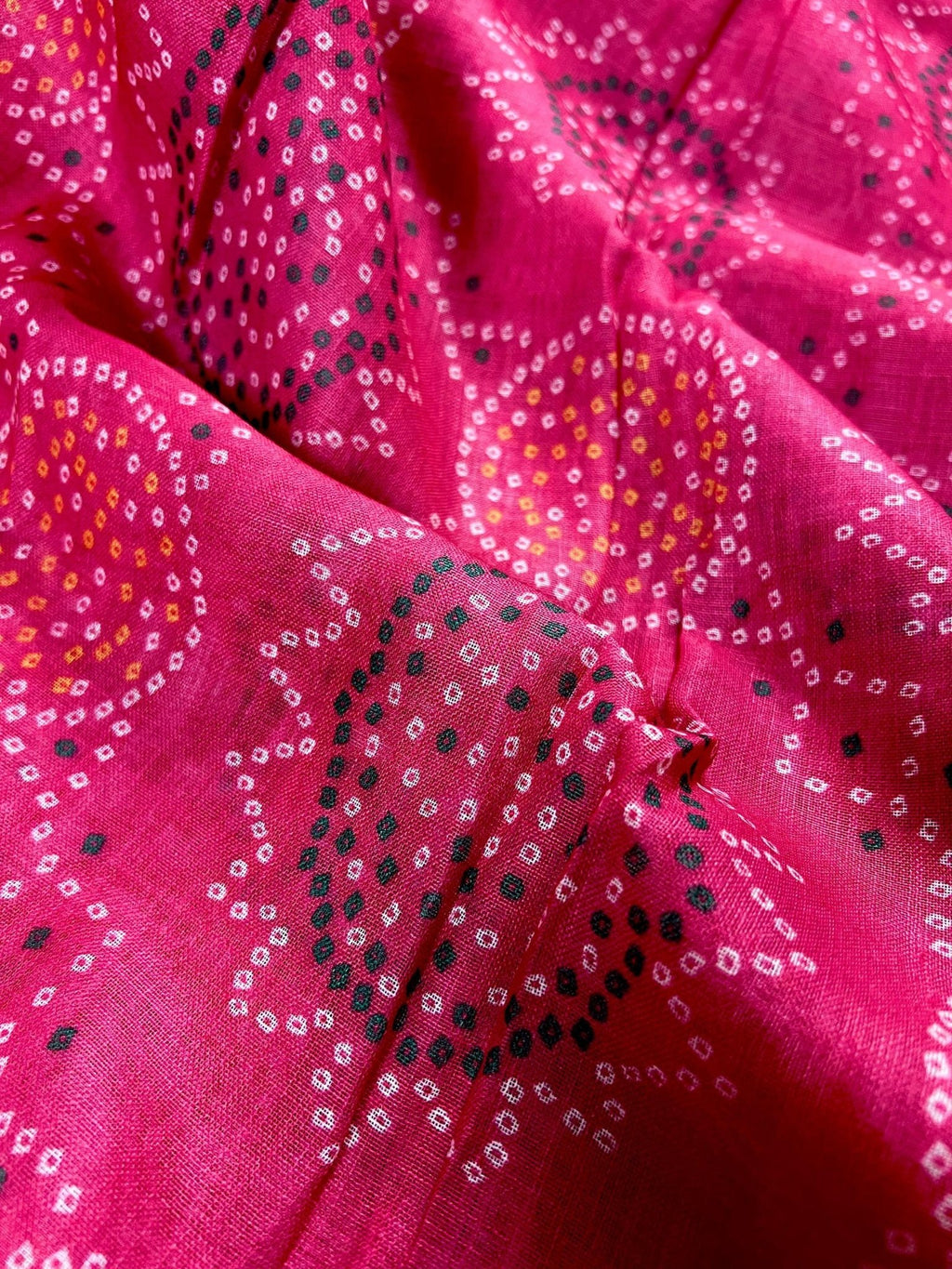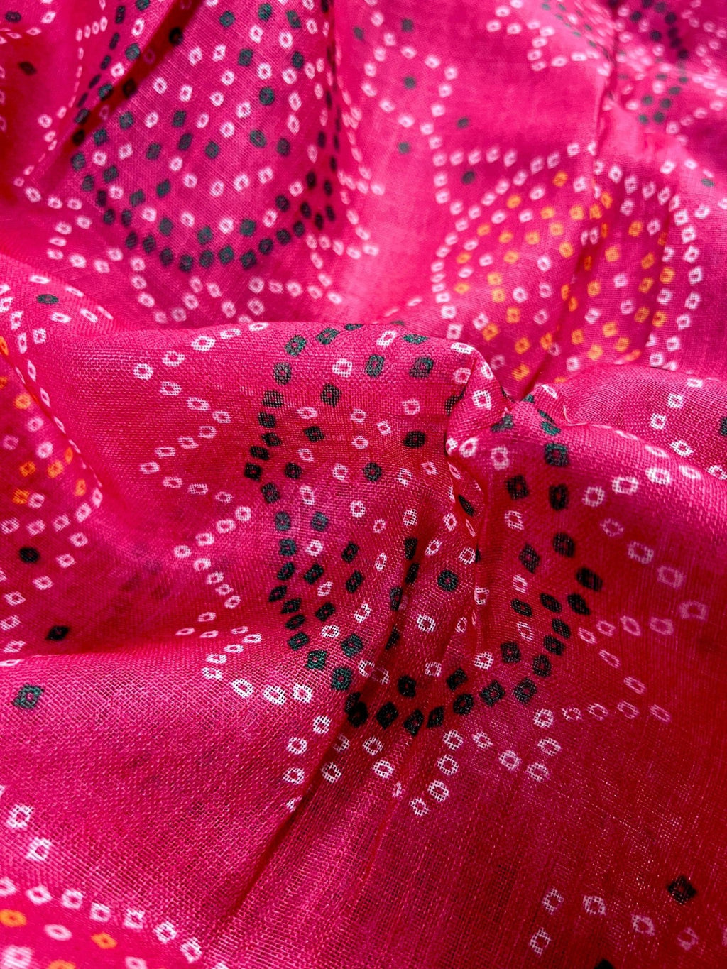 Pink Color Pure Linen by Linen Saree wth Bandhani Digital Prints with Floral Yellow small border.