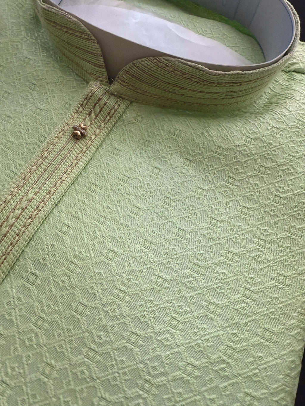 The luxurious pista green kurta pajama is tailored to perfection, offering a regal look for weddings, festive celebrations, or cultural events.