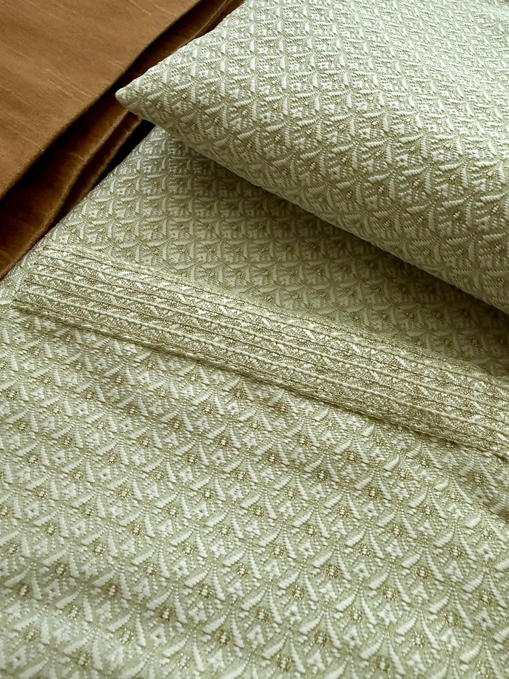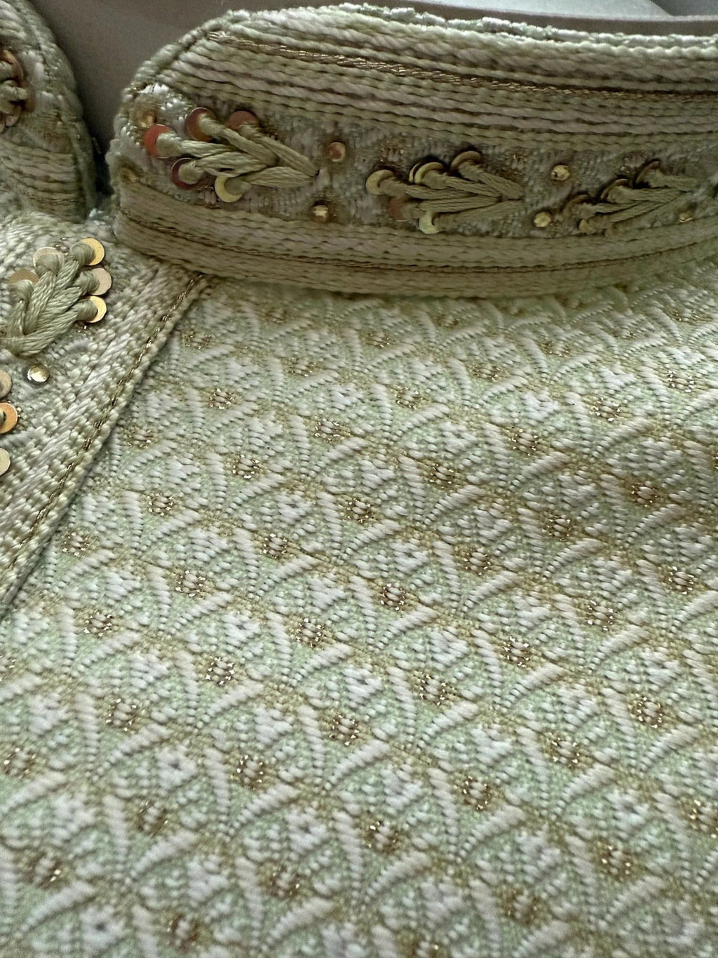 Pista Green Men Kurta Pajama Set with intricate design zari weave, tiny sequin