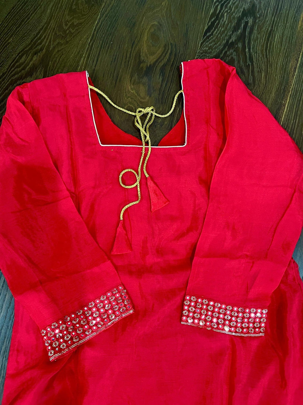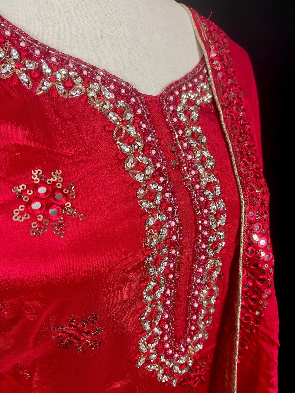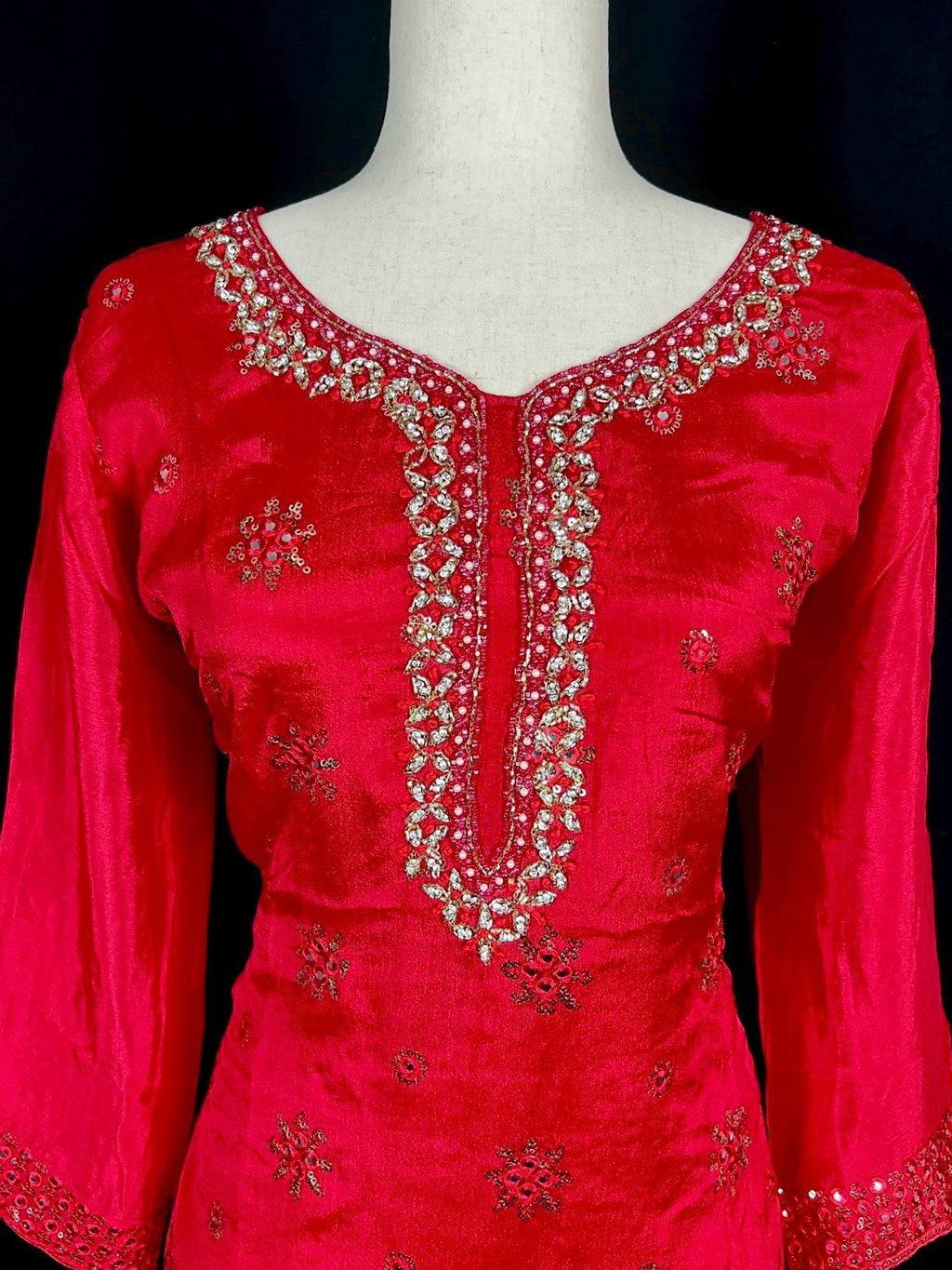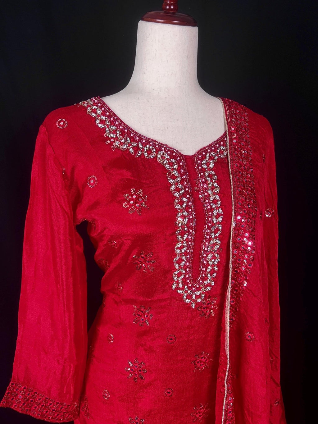 Readymade 3pcs Suit in Red Color For Women with Handwork