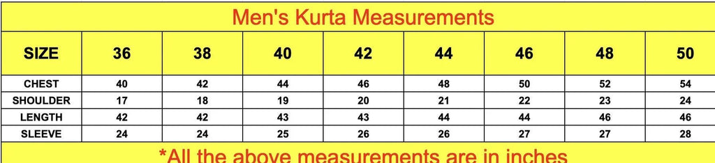 - Please do NOT go by the size of the Kurta that you already have from another maker. All makers have different size Charts.