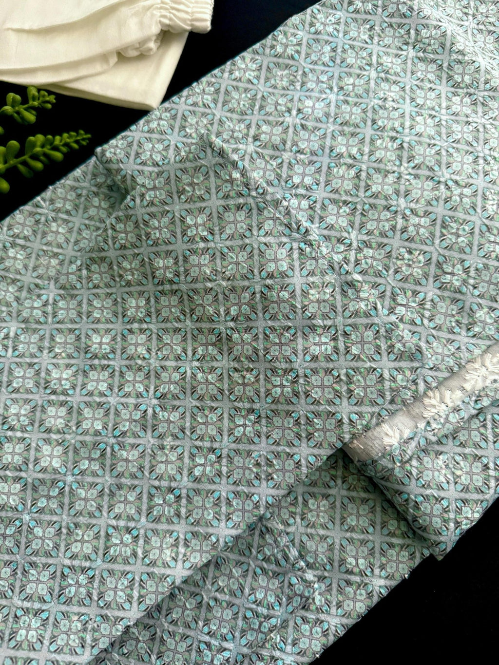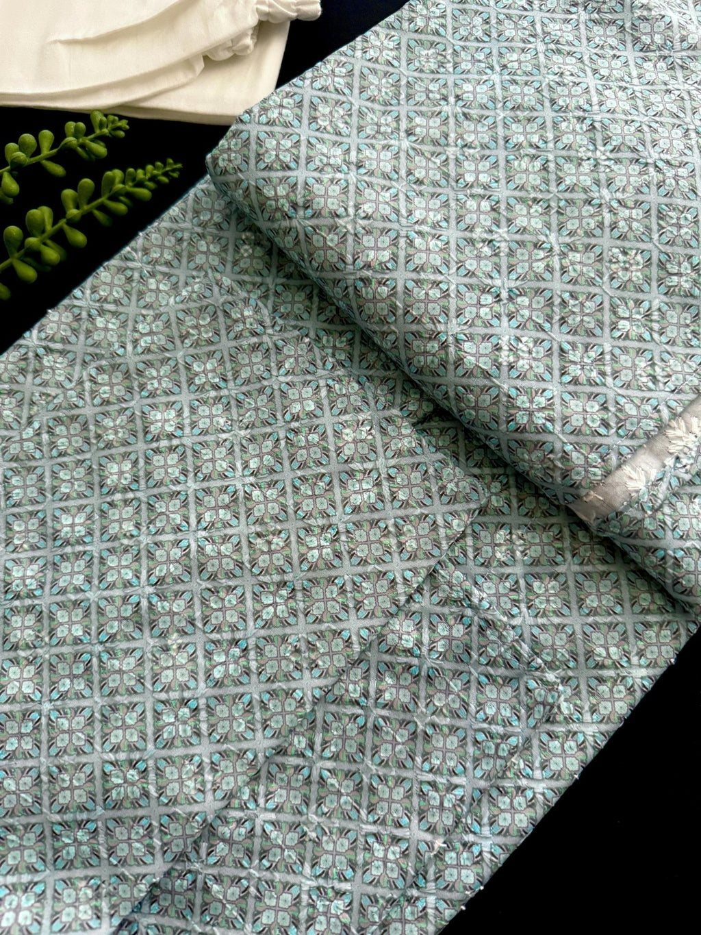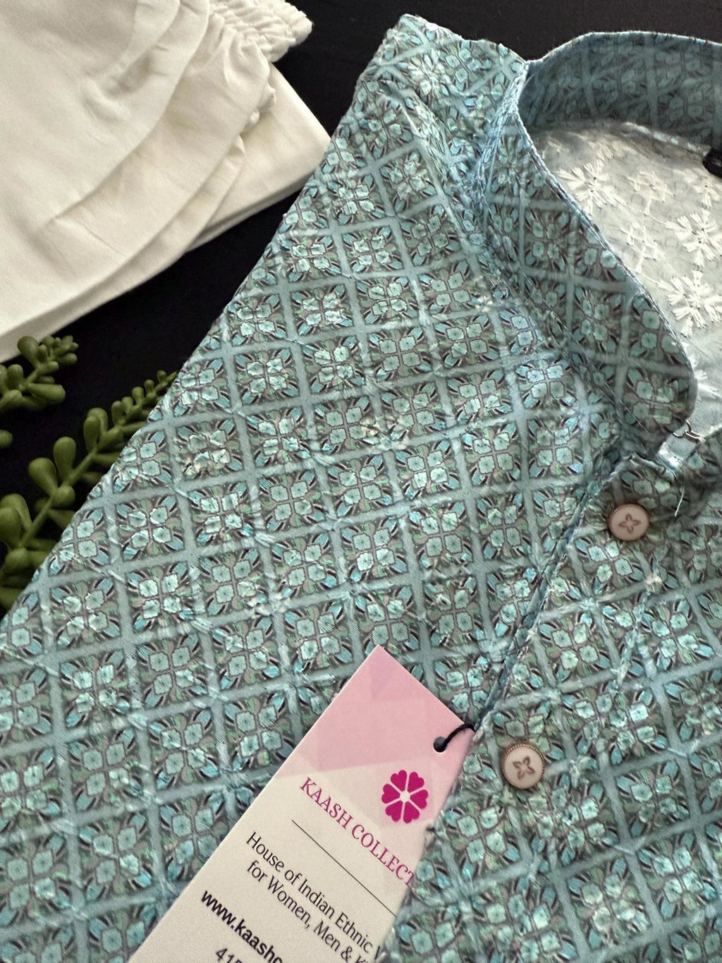 Sea Blue Color Designer Kurta with Floral Digital Print in Soft 100% Cotton with Embroidery and Sequin Work