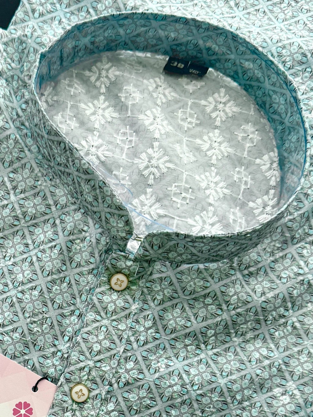 The Kurta comes as 2pcs Set with white Cotton Silk Pajama.