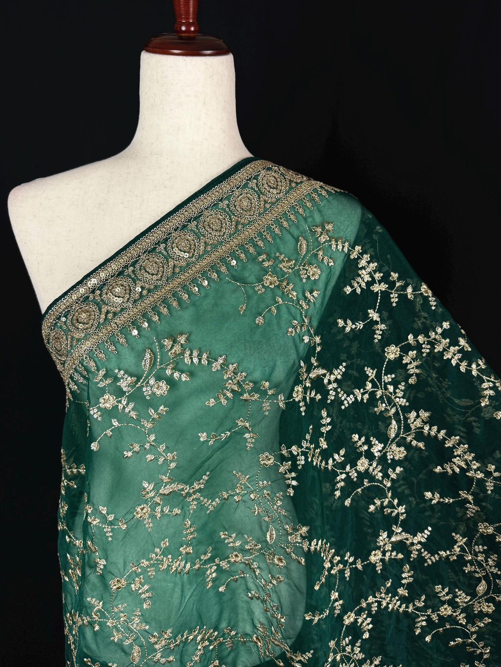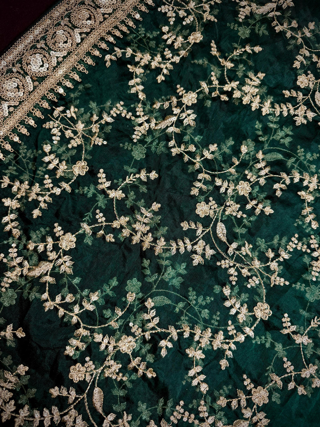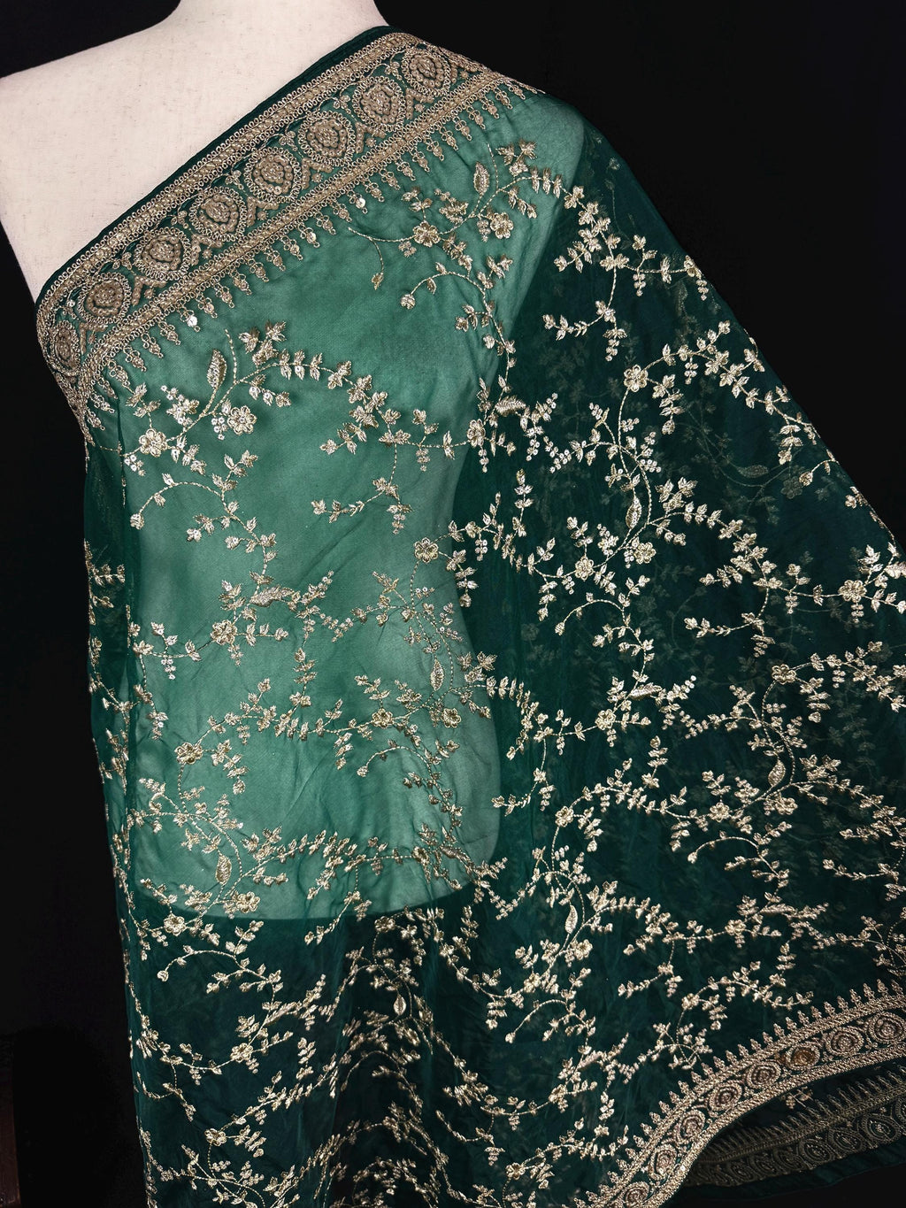 Gorgeous Green Soft Organza Silk Dupatta with Embroidery, Gold Zari & Sequin Work