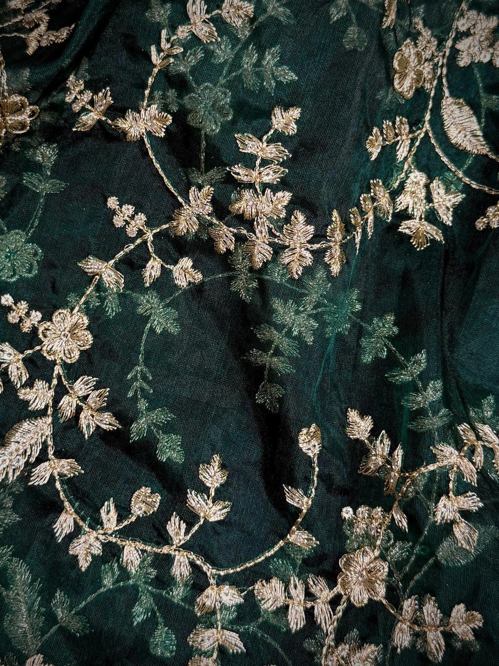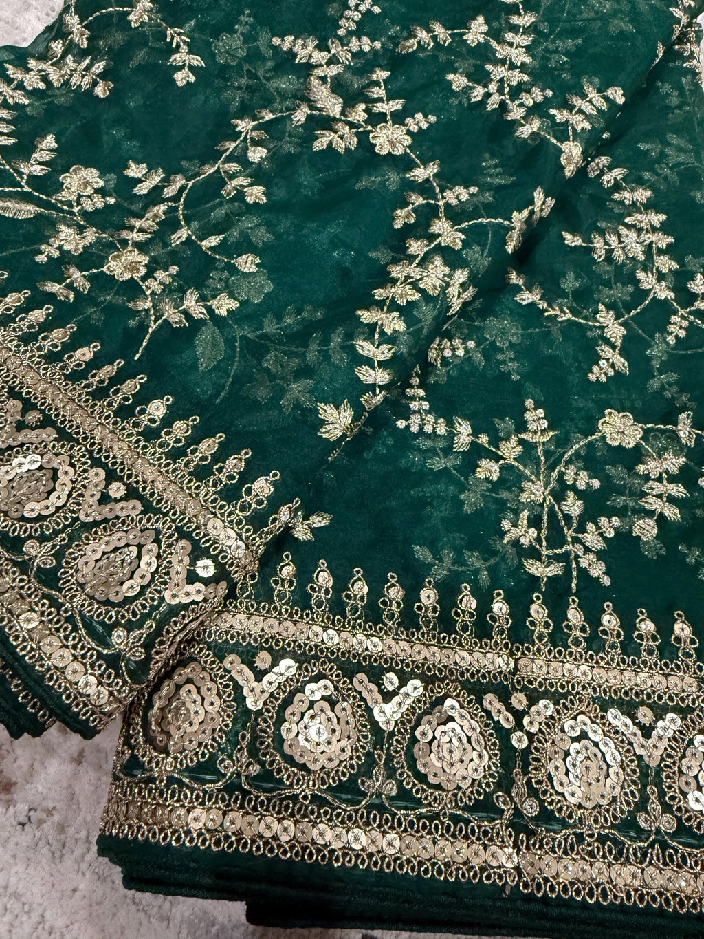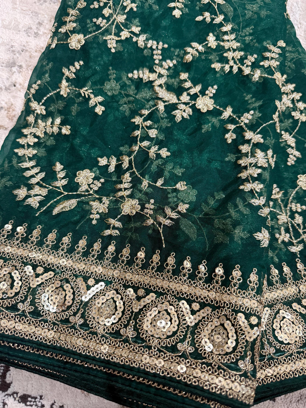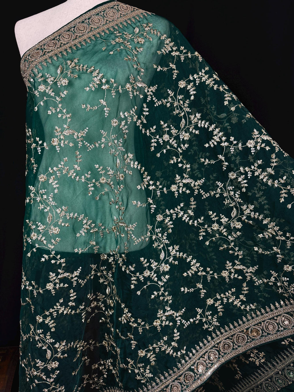 Gorgeous Green Soft Organza Silk Dupatta with Embroidery, Gold Zari & Sequin Work