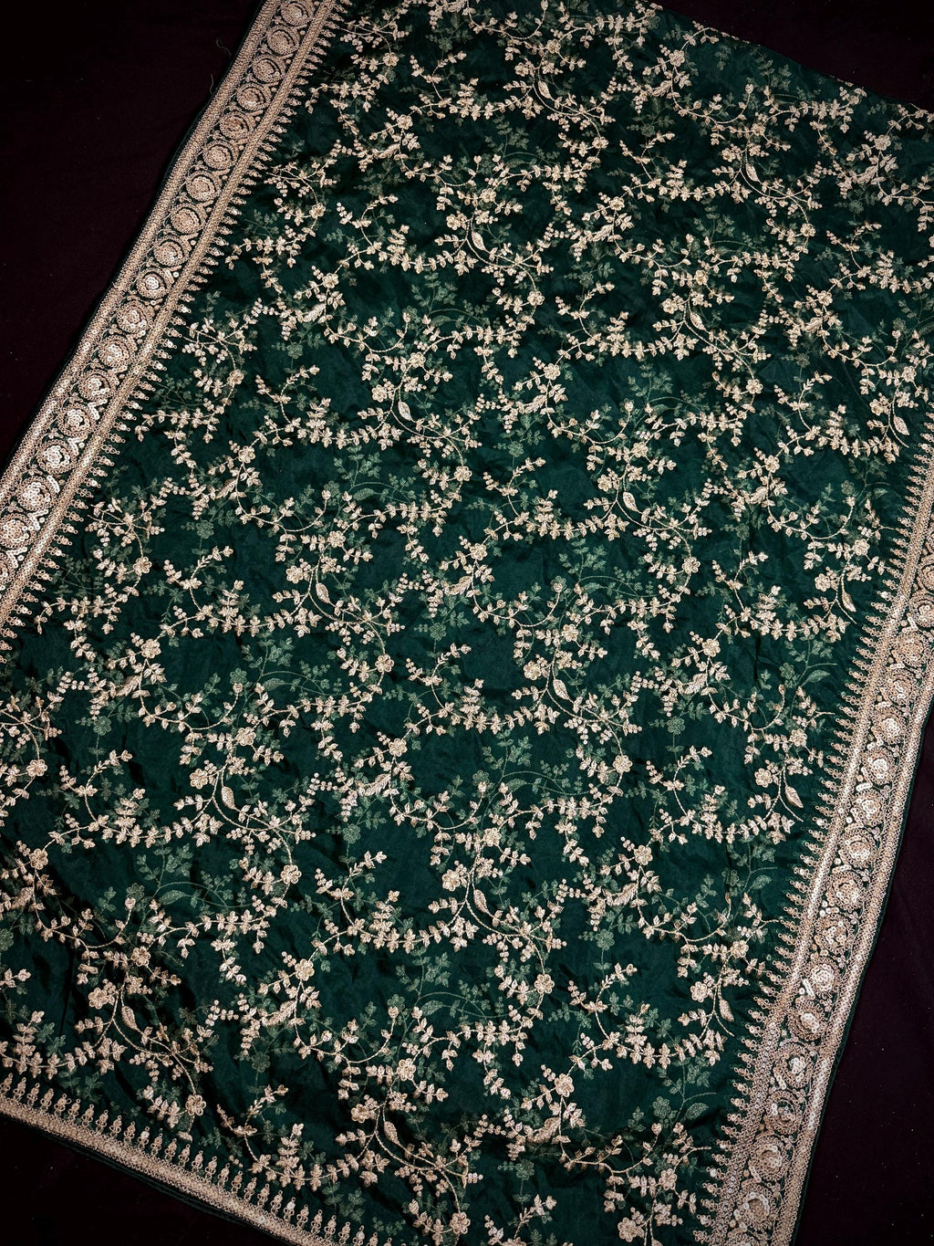 Statement Green Color Organza Silk Dupatta with Muted Gold Zari, Embroidery and Sequin | Wedding Dupatta | Dupatta for Lehangas | Gift Ideas