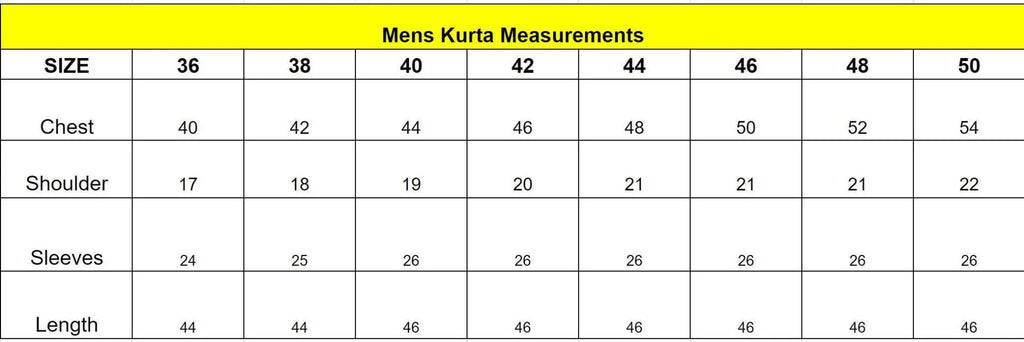 - Please do NOT go by the size of the Kurta that you already have from another maker. All makers have different size Charts.